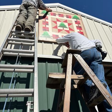 The Littleworth Farm barn quilt is ready to hang. Karl and Dave have it all figured out! This hand painted barn quilt measures 4' X 4' and was a labor of love!