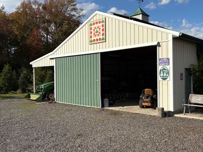 Be sure to take a look at our beautiful 4' X 4' barn quilt now hanging on the barn here at Littleworth Farm. We are taking custom orders if you'd like us to paint a large one for you!
