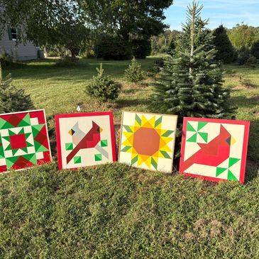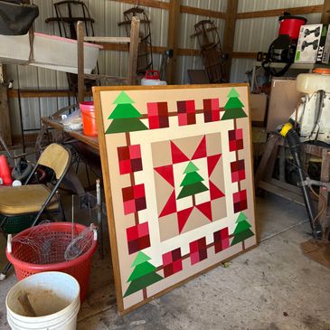 Karl and Janet have hand painted 4 special barn quilts to offer for sale during our Christmas Tree season. These 2' X 2' barn quilts are perfect for your porch or shed. $125 each