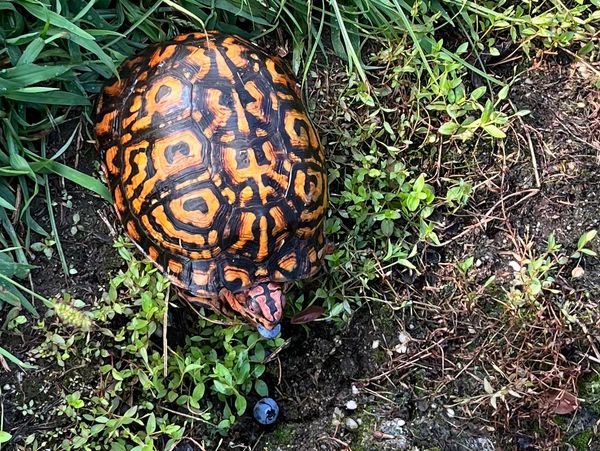 Karl found this turtle enjoying his breakfast the other day. Nice to know that wild creatures enjoy the berries, too!
